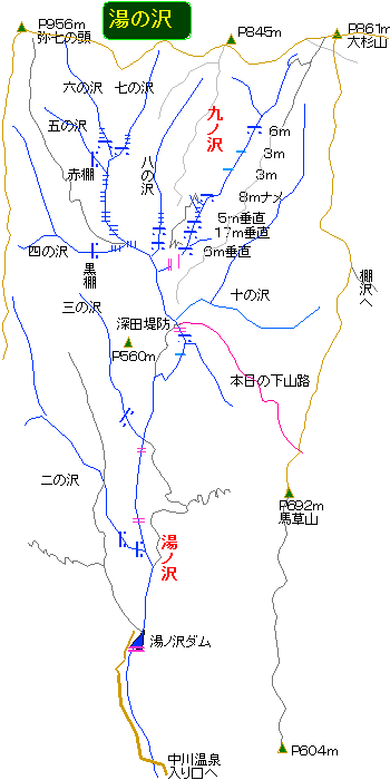 湯ノ沢といえば崩壊直前の岩が多くを占め、厳しい地形を形作っているのは知られているが、八・九と奥がどのようになっているのかを聞いたことがない。