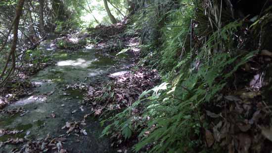 この道は東海自然歩道の一部と言われているが、沢の中に引かれているこの道は、環境庁所管であるのに一般開放の周遊用としては歩きにくい。