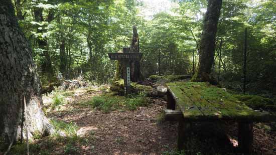 抜け出たところは水晶沢の頭(腐りかけたベンチあり)