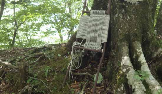 白石峠(地形図上で用木沢出会いへの登山道が引かれている地点)の背負子は誰かの作品(造形物)らしい