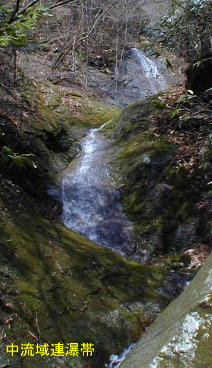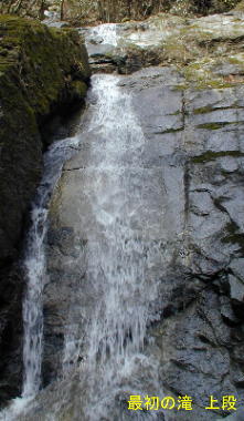 8m滝の上には2m×2個の小滝が続いているが惰性で登る滝である。