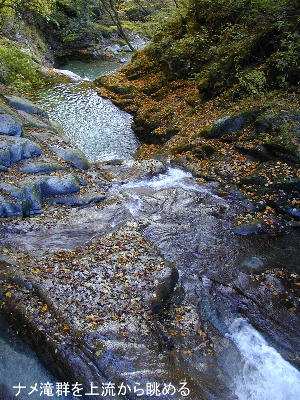 これら一連のナメ滝は傾斜は大したことはないし、難しくもないと思うが、直に取り付くためには、大きい釜に入ら無ければならない。