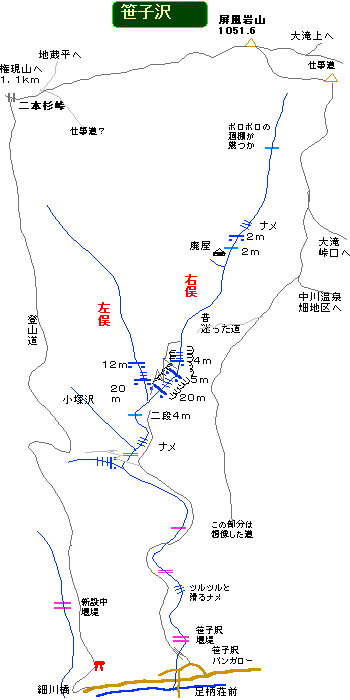 笹子沢って屏風岩山〜二本杉峠間の稜線に突き上げると思いこんでいたから、