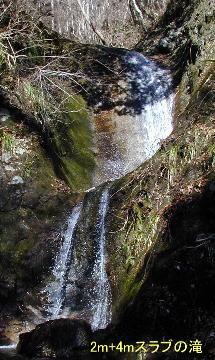 そのままナメ状は続いて、小さな釜を挟んで抉れたスラブの2m、4mの滝に続く。