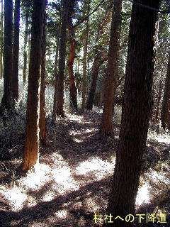 そんな春の陽の下の踏み跡は、上ノ原地区の村社の裏で登山道と合して終了する。