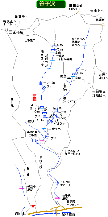 いいや、大滝から、この部分までが笹子沢で特異な場所で、それ以外は特別に難しかったり険しかったりしていない、いわゆる平凡な沢が続いている。