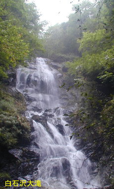 白石滝は白石峠から下ってくる登山道の右手下方にあって、観望台もあるから間違いない。