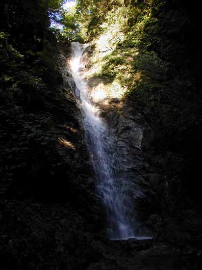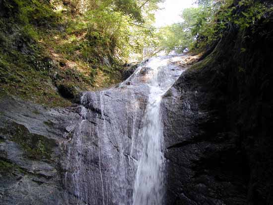 直ぐに瀬音が高くなり、最初の滝8mが出現する。