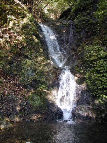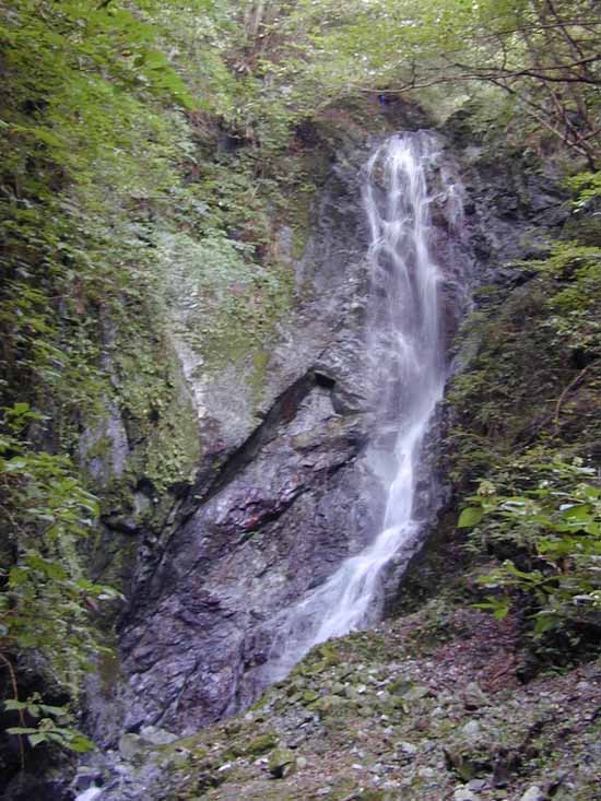 自宅5:40〜本厚木5:56〜松田6:25JR〜谷峨6:55頃富士急バス〜中川温泉7:10頃〜割沢橋7:20〜F27:30〜F47:50〜奥の大滝9:20〜稜線9:55〜屏風岩山から中川温泉への尾根道〜P1050m10:05ここから戻り〜先程の中川温泉畑地区への道(この道はおそらくしっかりとした良い道だと思われる)〜中川温泉への道から大滝口キャンプ場への道へ(この道もマークもあり踏まれているしっかりとした道だと思われる)分岐〜大滝峠への道から分岐(分岐から暫くは不鮮明な箇所があるが直進で下降すればやがてしっかりする)〜大滝峠口から中川温泉側に寄った大カーブの地点、尾根の末端で車道へ下降10:40〜中川温泉〜細川橋11:20富士急バス〜谷峨_11:48JR〜松田〜本厚木〜自宅13:00 晴れ 2002/10/04