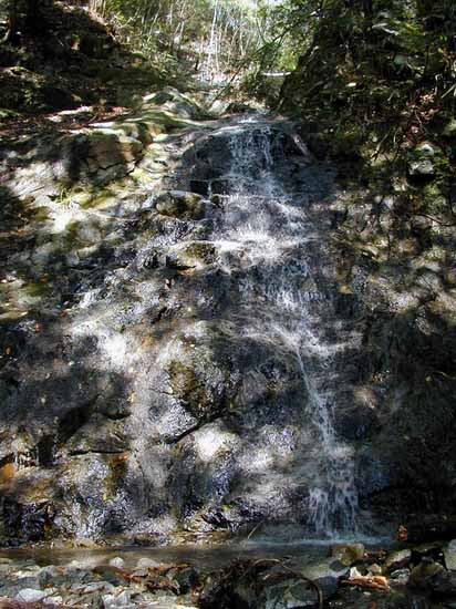 右にナメが続く沢を水流比3:1(ほとんど水なんか尽きかけているから意味無いか)で分け、左に進んで小滝を越す。