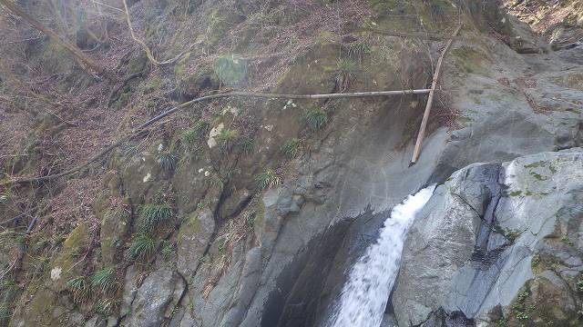 大滝右側の泥の詰まったルンゼにセットされていた虎ロープは見当たらなかった。