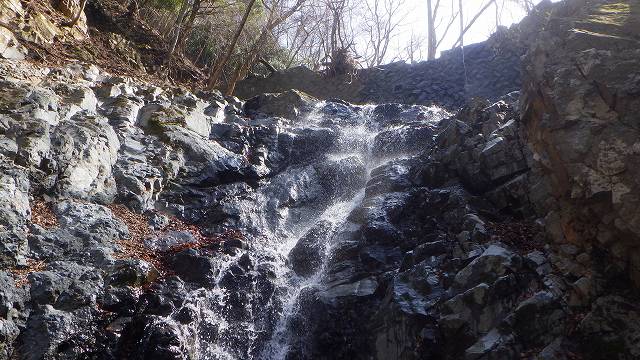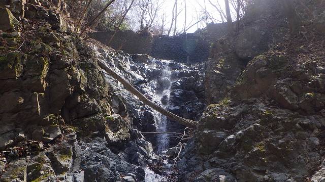 本流から水沢を見ると、本流にあるのと同じ石積堤がすぐそこにあり、その下の岩場とは一連の滝のようになって出来ている。