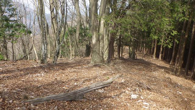 そのような道が尾根から外れて植林帯の中に降りて行ったのは標高で700m付近だったかP655mだったか。