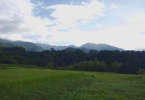 近くの山の上を雲が流れて富士山を隠す。