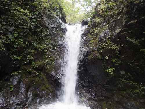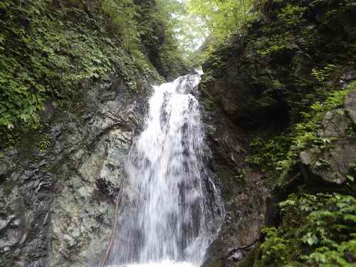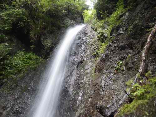 次の滝は右から水流を浴びつつ、夏ではの登りが楽しめる