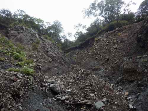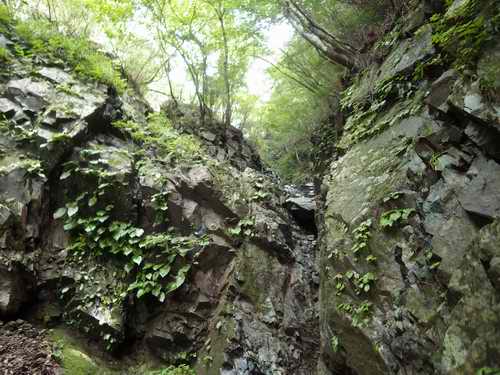 この左俣、不安定なガラガラな沢であり、沢登りとしては魅力の少ない所とガイドブック(丹沢の沢110)に記載されているが、それは左俣を右俣(本流)と見なして歩いた上に、上半部はエスケープしたらしく、奥部については思いこみで書かれている面が強いのではないか。