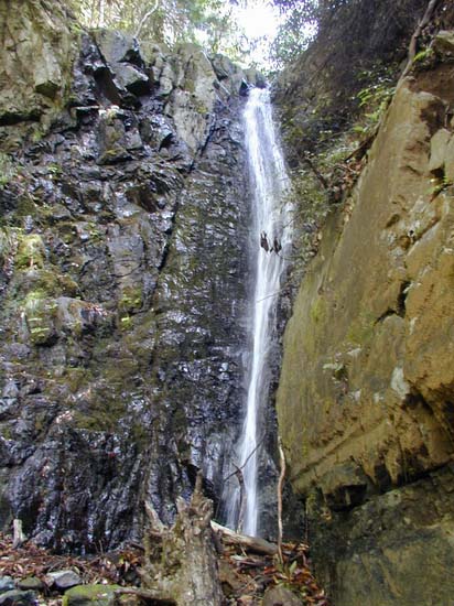 この滝は、ホールドが大きくしっかりしていそうだが、傾斜度が高いからここも当然まいて登ることになる。