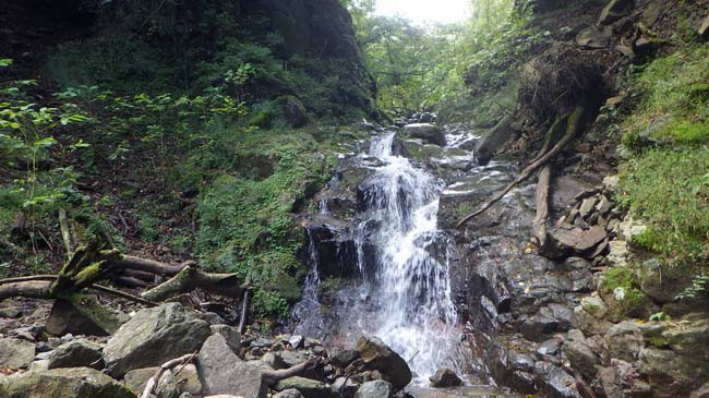 大いなる危険場無く、山頂に達することが出来るこの沢は、修験修行場としてなら一般道には得にくい適度の厳しさが無いわけではなくが断食とか不眠不休と組み合わせることで修行の場になりえたのではと思う。