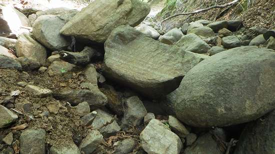 その大石落下からは用心したが、それからも何回か、大石はないが転石に同じように足を取られることがあった。
