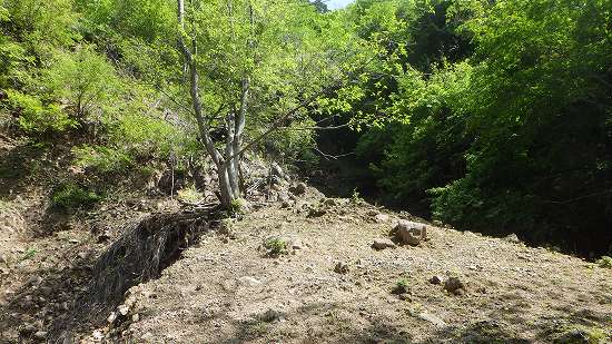 三つ目の石積堤は左半分が自然岩、四つ目は上からの土石でほぼ埋まっている。