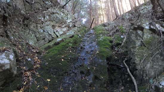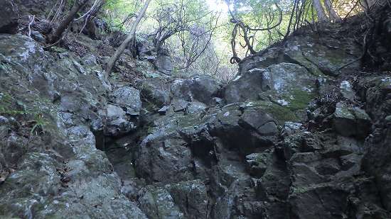 法華峰林道から少し奥まったところは乾いた岩床の沢となる