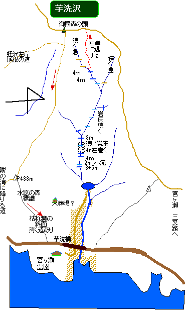芋洗沢は宮ヶ瀬三叉路から県道を札掛側に入ってすぐの宮ヶ瀬霊園手前の沢だ。