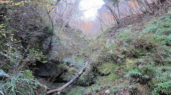 一旦側面に上がったが、そのまま進むと沢床に下るのが面倒になりそうな感じなので戻って底に入り直す。