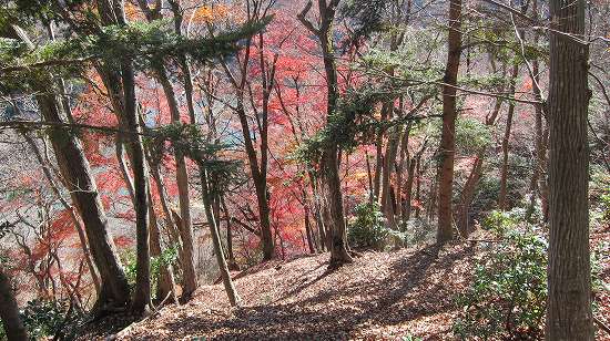 枯れ葉が表層を多い、枯れ葉に乗ると滑りやすい。