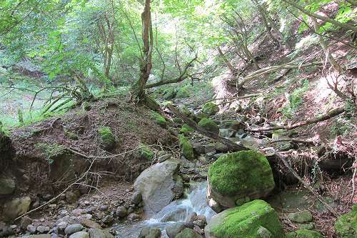今まで歩いた中では、この沢に水流のあったためしはないが、本日はしっかりとした水流である。