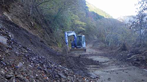 堤川林道土砂撤去作業中(4年間待っていた)