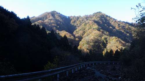 山肌の木々は落葉している。