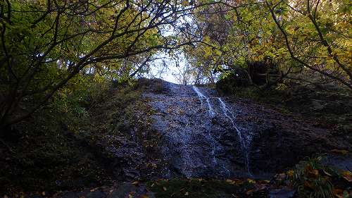 沢の近くの木々の葉は色が着き始めたばかりのように思えて盛りには足りない。