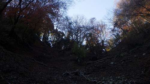この道、標高500m付近で二分して、右に下る方が本道であると認識していたが、その目標地点に降りても感覚鈍いマシラは地形の見分け能力も劣ってしまったらしくて、二分の尾根が見つけられない。