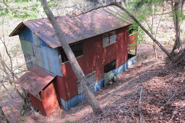 それでも川がすぐそこそうに思える頃には杣道から経路風にかわっ風穴沢縁の廃屋(中村工務店の宿泊場 廃屋)に降りた。