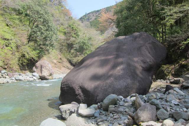 中津川河原に転がる大岩は小川谷の大岩と傾斜面角度大きさがほぼ同じ感じって学んだし