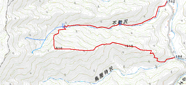 本来の狙いはP415mだったが、不動の滝から一つ奥の滝へと少し奥まで歩いたこともあって、その場合はP415mとP616m間の鞍部付近に出ると見ていたのだ。