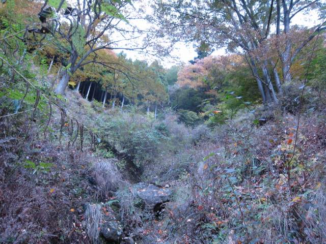 ゴツゴツした石々の転がる沢の中を歩くよりは、沢沿いの道を歩いた方が楽ちんだからと沢から幾らか上がった斜面中の経路を行く。