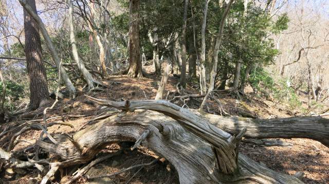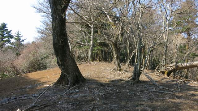 馬酔木を縫って登れば楢椎クヌギなんかの薪と樅なんかの古木が混じった尾根状が明白になり、開けた斜面となった中をひと登りすると傾斜が緩む。