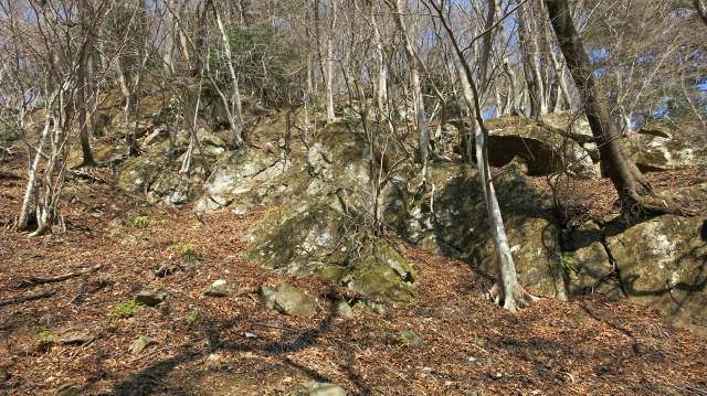 露岩が直進を阻んでも無理は禁物、なすがまま左上がりの露岩の裾に沿って登って露岩が終わったところから上に回りこむ。