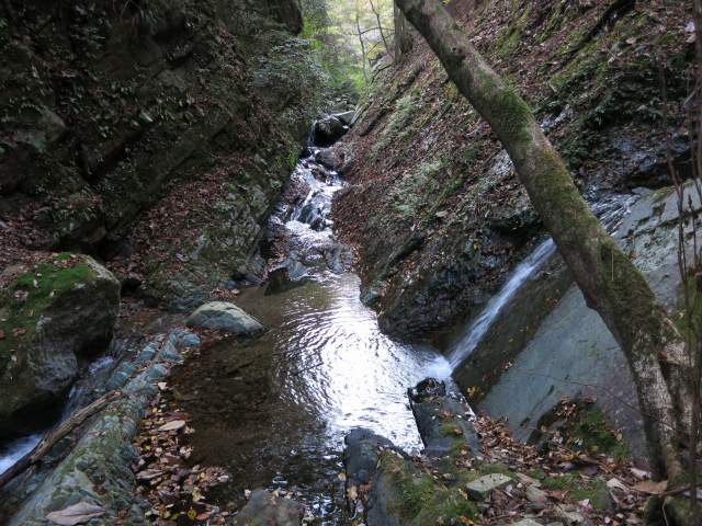 最初の3mCS滝は俺には難しくて右の尾根を巻いて伝ったら直ぐに下りるが、高さはたいしたことない15mくらいだが急斜面中の立木と根を頼って下るがちょっとびびり気味となるので、そういうの好きじゃ無いなら20mロープを持参すると良い。