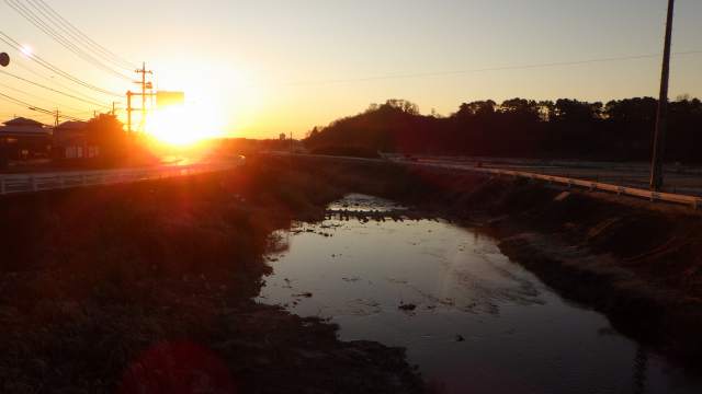 出発は日の出時間帯 朝日がまぶしい 千頭橋付近