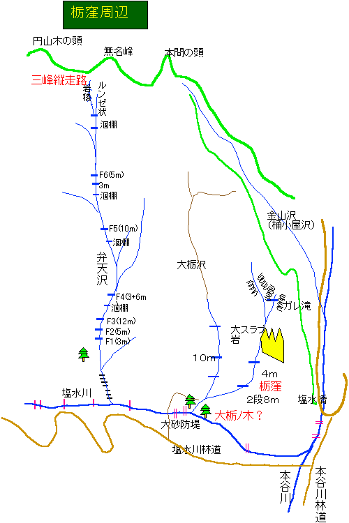 大栃沢は、今日マシラが間違って登った左側の沢が、それに相当するのであろうが、確定の自信は無い。