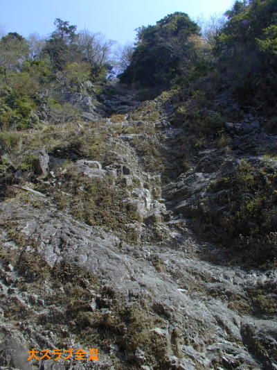 堂平からの林道を自転車で降りてくると、いつも気になっている大スラブが上部に見える。