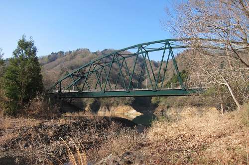 ビオトープ(非公開中)越しに東沢橋と宮ヶ瀬尾根