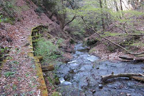 沢を渡る所の丸太橋は腐って落ち、前後の水平部は上からの流水や流砂によって埋まる。