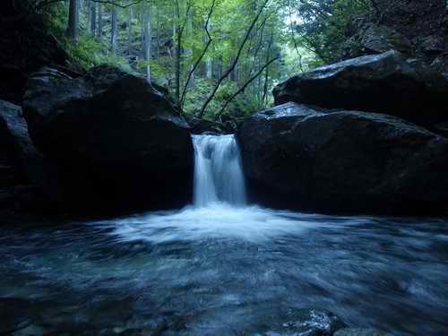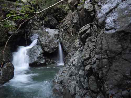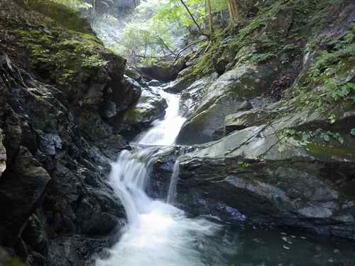 大きな滝はないが、小滝と深い釜の連続帯となる