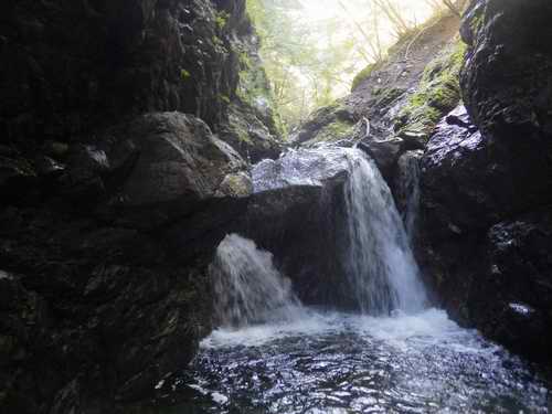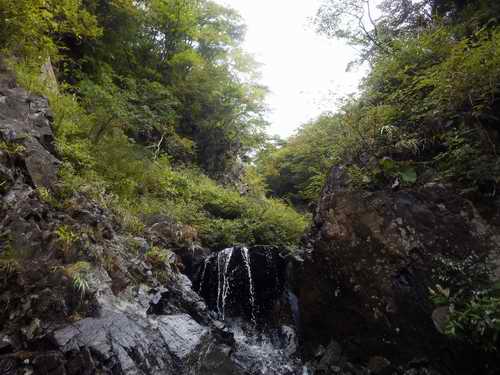 沢に戻って見えるのは、左右を岩壁に挟まれた小さなゴルジュ状である。