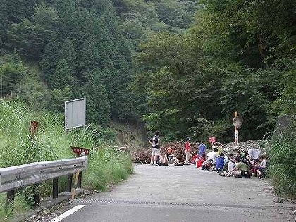 体力温存セーブモードで土山峠を越えようとしたら、マシラを抜き去った車が送水監視小屋の前に停車してドライバーが