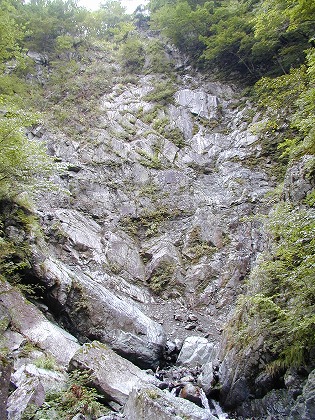 そこから仏谷までの間は流れの中を飛び石したり、流れには行ったり右に左に足を踏み変えて行くが、あえて言えば小滝らしきというものが有るだけの河原歩きだ。