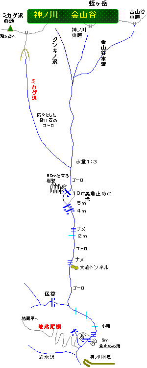 結局、金山谷は二つの「魚止めの滝」をアクセントにして、それ以外には滝らしい滝は無いと行ってもよいのであろう。